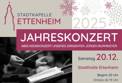 Wir freuen uns über Ihr Interesse für die Stadtkapelle Ettenheim. Stöbern Sie in unserem Internetauftritt und informieren Sie sich über bevorstehende Auftritte und Aktivitäten unter der Rubrik Termine oder werfen Sie einen Blick in den Rückblick, in welchem unsere vergangenen Veranstaltungen aufgeführt sind. Lernen Sie die vier Orchester, das Schüler- sowie das Jugendorchester, die Unterhaltungsabteilung und das große Orchestern näher kennen. Beachten Sie auch den Blockflötenkurs für die Klassen 1 und 2 sowie den Sing- und Spielkreis für Kinder zwischen drei und sechs Jahren.
