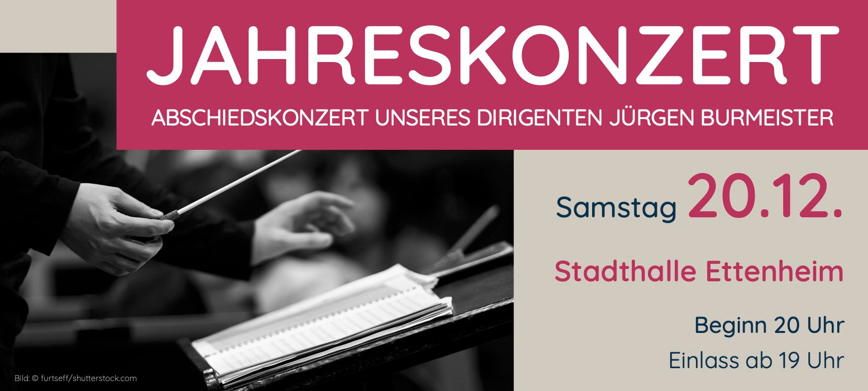 Unser vorweihnachtliches Jahreskonzert der Stadtkapelle Ettenheim – es ist gleichzeitig auch das Abschiedskonzert unseres langjährigen Dirigenten Jürgen Burmeister – und des Jugendorchesters der Stadtkapelle, dirigiert von Christian Sade findet am Samstag, den 20. Dezember 2025 in der Stadthalle Ettenheim statt.